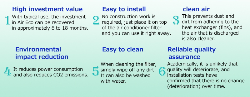 By installing Air Eco, the air conditioner outlet temperature will be lower when cooling and higher when heating.