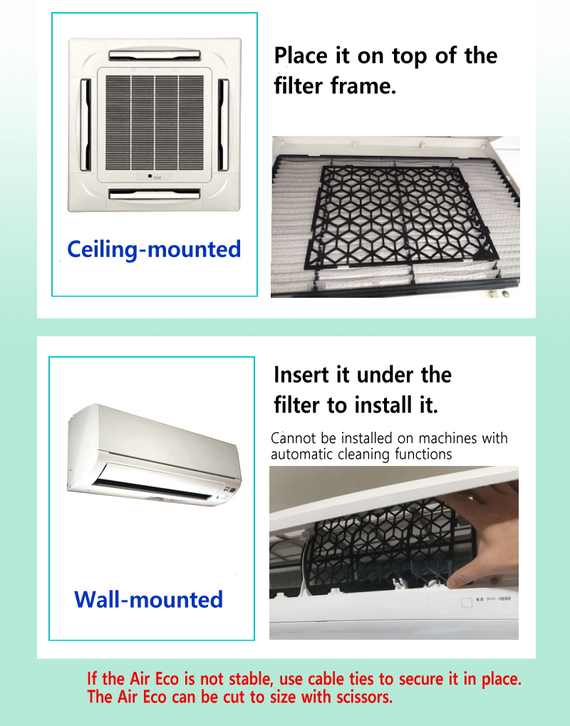 Simply place it on top of the air conditioner's filter; it won't impede airflow or affect the electrical circuit, so it won't malfunction.