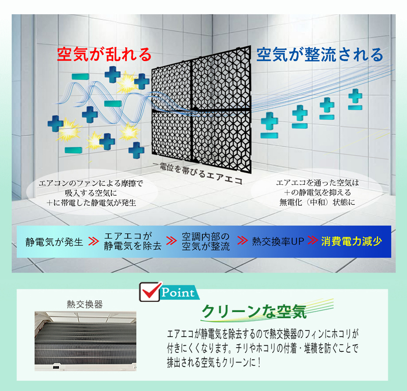 静電気を抑え空気の流れを良くすることで熱交換率をアップ